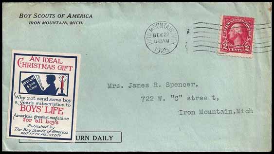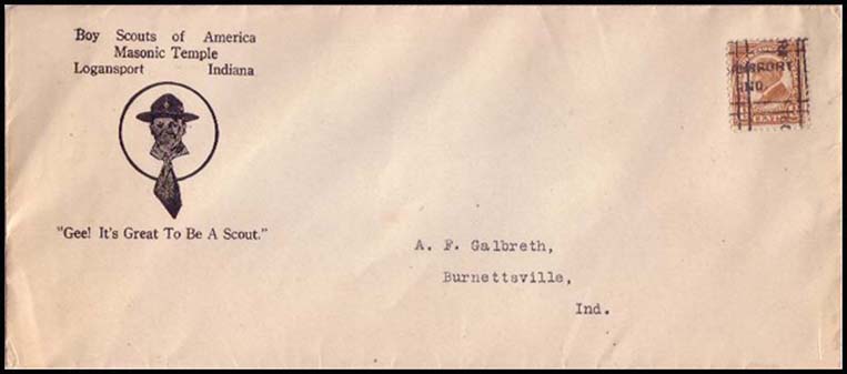 The addressee, J. Emory Renoll, was a stamp dealer who advertised in Boys' Life. Boy Scout labels