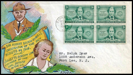 Four Bar FDC Juliette Low - Girl Scout Stamp